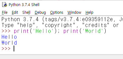 한 줄에 여러 구문을 작성할 때 사이에 세미콜론을 작성해 구분시킨다.