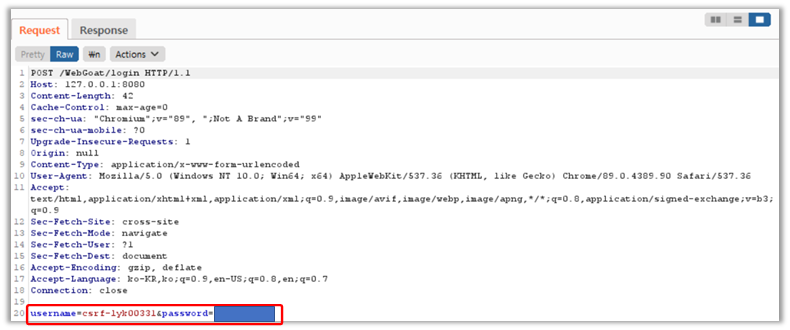 2. 다음과 같은 코드를 동작시킴으로써, 다른 아이디인 csrf-lyk00331로 로그인할 수 있게 했다.