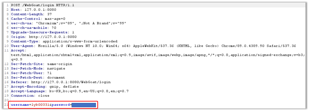 value에는 기존 아이디인 lyk00331의 패스워드를 적어준다.