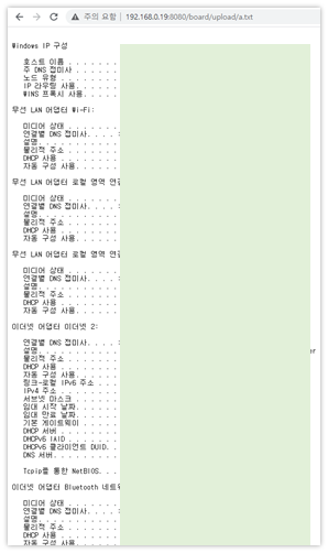 동일한 경로에서 a.txt를 확인해보면 cmd 명령이 실행된 결과들을 모두 확인할 수 있다.