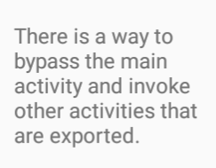 147번 라인을 보면 Manifest에서 exported 값이 true로 설정되어있는 것을 볼 수 있다. 인텐트를 허용하면 다른 곳에서 이 활동을 호출할 수 있다.