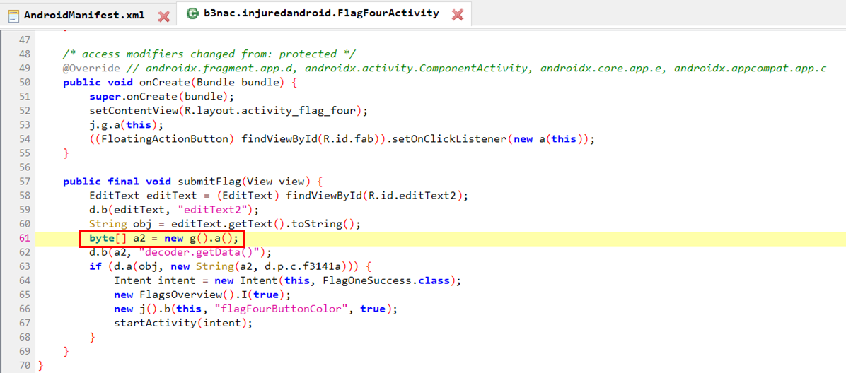 FlagFourActivity의 submitFlag함수를 확인하면