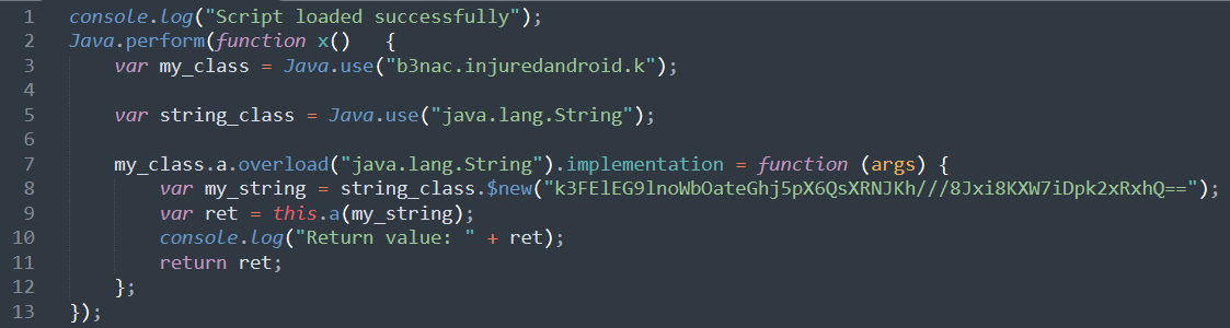 이 함수는 복호화 작업을 진행고, 함수를 frida와 연결하고 스크립트를 작성하여 암호화된 값을 넘기기 때문에 우리가 입력하는 값이 어떤 값이 되든 상관 없다.